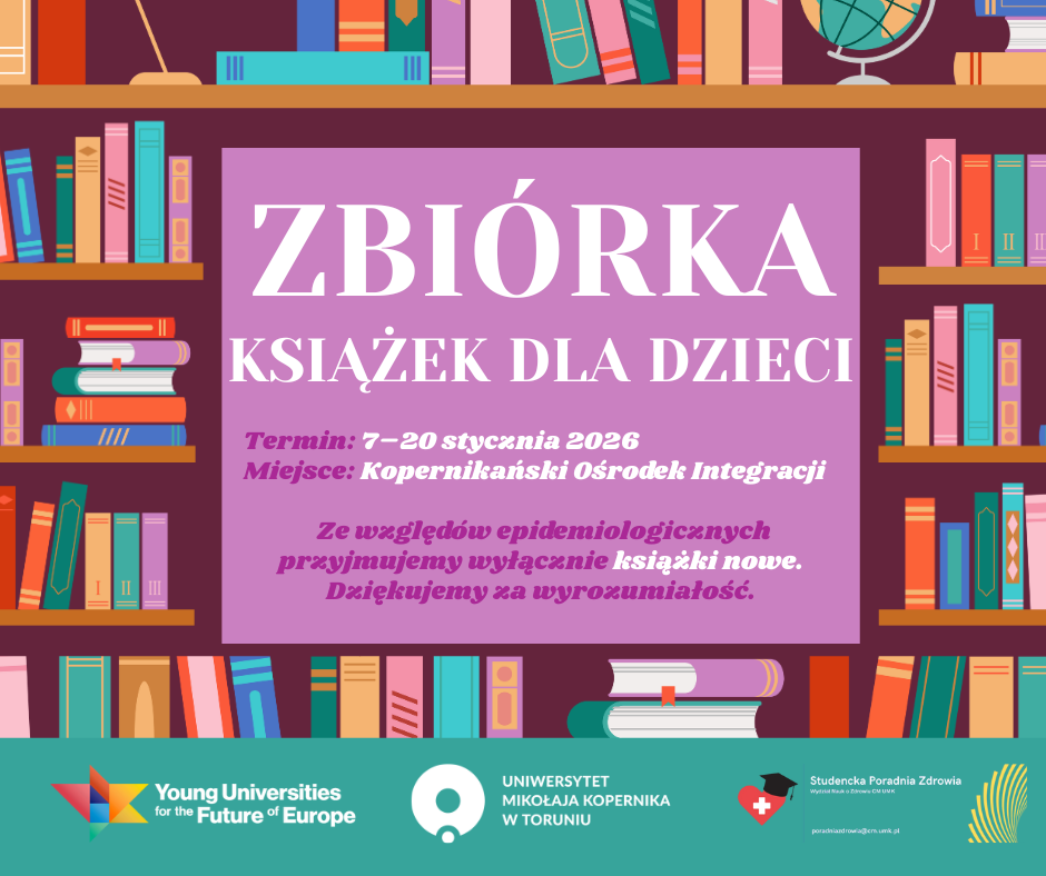 Studencka Poradnia Zdrowia organizuje zbiórkę książek dla dzieci przebywających w Klinice Pediatrii, Hematologii i Onkologii Szpitala Uniwersyteckiego nr 1 im. A. Jurasza w Bydgoszczy.